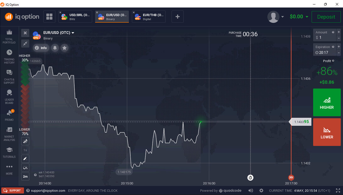 ومن أبرز مزايا IQ Option إمكانية فتح حساب تجريبي مجاني برصيد افتراضي للتدريب يبلغ 10,000 دولار أمريكي. بما يُتيح لك التدرُّب على التداوُل دون المجازفة بأموالك الحقيقية – وهي ميزة ذات أهمية استثنائية للمبتدئين.