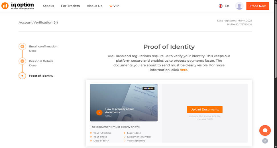 تطلب IQ Option ما يلي امتثالًا للوائح التنظيمية: