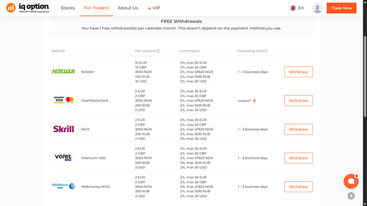 علمًا أنَّ مدَّة معالجة الطلب تختلف حسب نوع الحساب ووسيلة السحب المُستخدَمَة، وتبلغ 24 ساعة (لحسابات VIP والمحافظ الإلكترونية)، ومن 1 حتى 3 أيام عمل (للحسابات القياسية والبطاقات البنكية)، ومن 3 إلى 7 أيام عمل (لعمليات التحويل المصرفي).